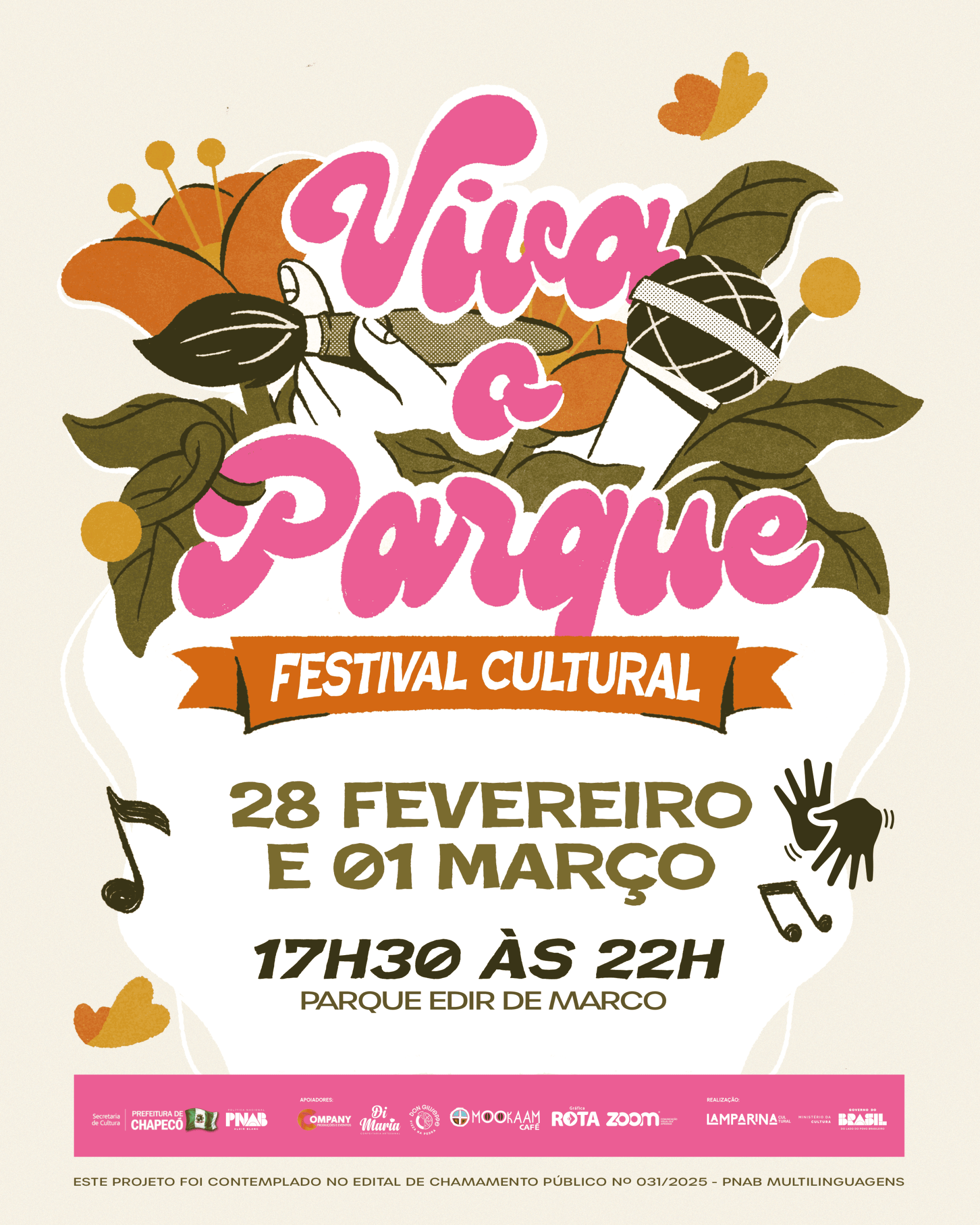 O Viva o Parque foi contemplado pelo Edital de Chamamento Público nº 031/2025 – PNAB Multilinguagens. A proposta reforça o parque, inaugurado em 2024, como espaço de convivência, lazer e circulação cultural em Chapecó, além de estimular novas ações artísticas na cidade.
