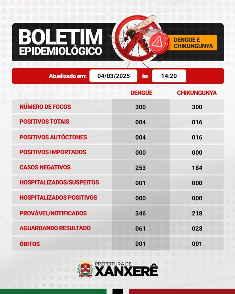De acordo com a Prefeitura de Xanxerê, por meio da Secretaria de Saúde, a jovem teve diagnóstico positivo tanto para dengue quanto para chikungunya.